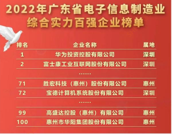 广东电子信息制造业综合实力百强企业是全省电子信息制造业的领头羊,带动着整个行业以及产业链的发展,是全省电子信息制造业、区域经济企稳及持续发展的主力军。此次荣登榜单,是对公司智造力、产品力、创新力、贡献力以及影响力的综合肯定,也是对公司作为行业引领者的示范带动作用的高度认可。