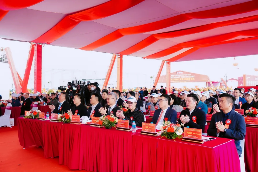 上午九时,仪式现场喜气热烈,出席活动的领导和嘉宾陆续抵达,在签名墙上留下签名,送上对kaiyun开云越南公司的美好祝福,大家欢聚一堂,共话未来新发展。锣鼓声声起,醒狮踏福来!随后,一场极具特色的舞狮表演精彩上演,金狮腾跃,灵动威武,象征着财源广进、吉祥如意,为项目顺利推进送上美好祝愿,奠基仪式在喜庆热闹的氛围中正式拉开帷幕。
