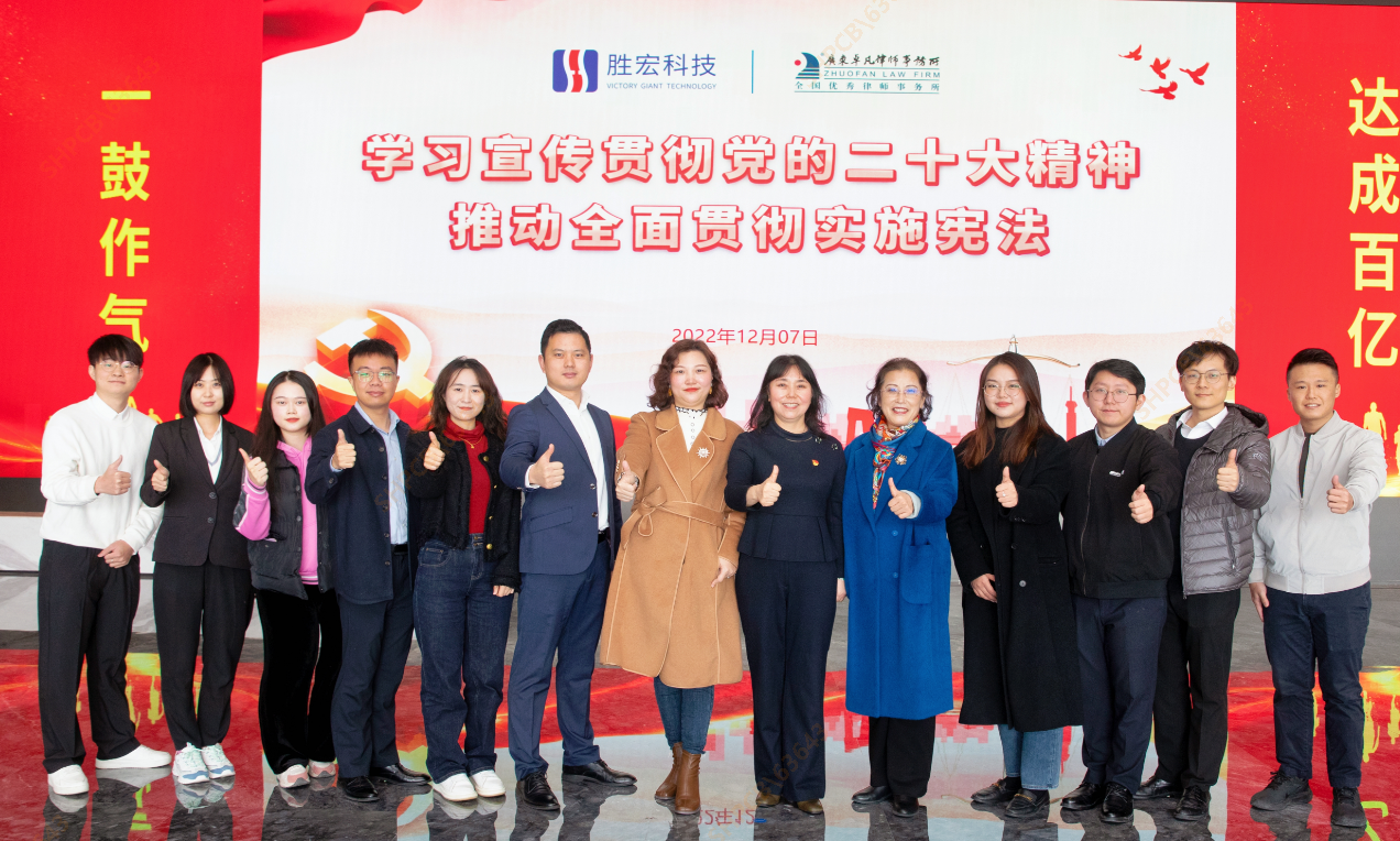 为深入学习宣传法治思想,大力弘扬宪法精神,增强员工宪法意识和法治观念,12月7日上午,kaiyun开云科技联合广东卓凡律师事务所开展以"学习宣传贯彻党的二十大精神,推动全面贯彻实施宪法"为主题的宪法宣传周活动。卓凡所党群总监、律师团队、我司党支部书记/行政管理中心总监张如萍以及党员代表、职工代表共计50人参加活动。活动由证券事务代表周响来主持。